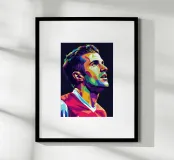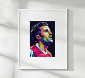 Ritratto pop art di Robin Van Persie poster con telaio in legno