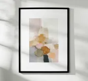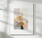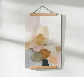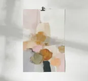 This abstract nature illustration combines soft colours in light pink, beige and light grey with organic colour fields, shapes and fine details. The combination of brushstrokes and muted tones creates a dreamy, whimsical scene that is perfect for modern interiors.