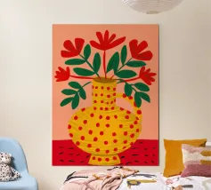 Un gatto bianco sonnecchia pacificamente in un classico arco mediterraneo ornato di bouganville rosa, affacciato su un mare blu. Questo pezzo cattura perfettamente il fascino sereno e solare di un'isola greca.