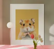 Simpatico criceto dalla soffice pelliccia dorata che tiene le piccole zampe in mano poster