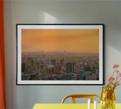 Skyline mattutino di Seul, Corea del Sud poster con telaio in alluminio