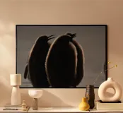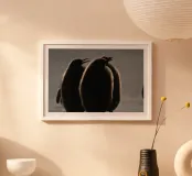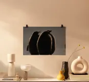 Soffici cuccioli di pinguino reale sulla spiaggia poster