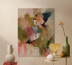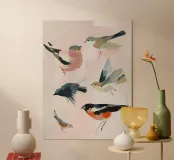 Scopri la bellezza della natura con questa stampa artistica inquadratata "Spring Visitors". Perfetta per decorare il tuo soggiorno o la camera da letto, questo pezzo d'arte celebra la primavera e la vita degli uccelli con un design vivace e contemporaneo.