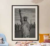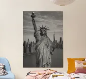 Statua della Libertà, New York, USA Panora della città in bianco e nero poster