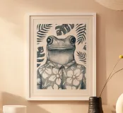 A cheerful frog enjoying the warm summer days, surrounded by the vibrant essence of nature. Perfect for those who love playful and whimsical designs that capture the spirit of the season.