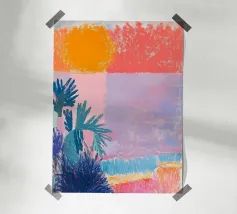 "Sunset Jungle Path" è un vibrante paesaggio astratto che cattura il calore e l'energia di una giungla tropicale al tramonto. Pennellate audaci ed espressive di verdi, rosa e gialli conducono l'osservatore lungo un sentiero tortuoso, mentre il sole al tramonto - un globo rosso incandescente - aggiunge un tocco di misticismo alla scena. L'uso giocoso di colori e forme evoca un senso di avventura e tranquillità, rendendo quest'opera d'arte perfetta per aggiungere un'atmosfera vivace ed esotica a qualsiasi spazio. Progettato da BALIKA HOMES.