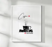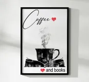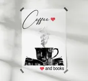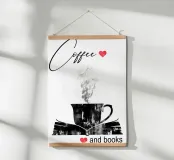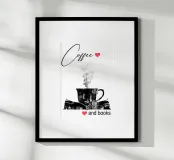 Tazza di caffè e libri poster con telaio in alluminio