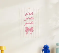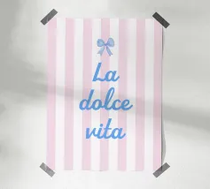 Blue stripes, with wavy pink frame and bow