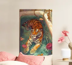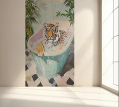 Una tigre in una vasca da bagno simboleggia la capacità di rilassarsi e lasciarsi andare. La scena mostra che anche gli esseri più forti hanno bisogno di rilassarsi per rimanere al massimo delle loro forze. Ci ispira a non lasciarci dominare dallo stress. Dopo tutto, chi si concede un po' di riposo affronta ogni sfida con rinnovato vigore. Un quadro pieno di leggerezza, profondità e serenità.