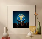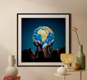 A group of people ideally supports the earth to save it from drifting.