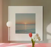 Tramonto sulle calme acque dell'oceano con riflessi pastello poster
