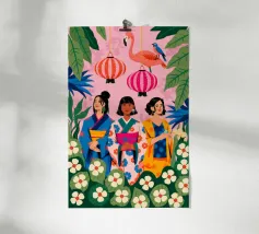 Rafaela Mascaro is a celebrated designer from São Paulo, Brazil, known for her powerful illustrations that feature natural and botanical elements. Her work seamlessly weaves women's stories into the landscape, merging human forms with organic surroundings in an evocative manner.