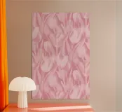 Bellissimo disegno di tulipani con tulipani e foglie color crema su uno sfondo rosa pastello.