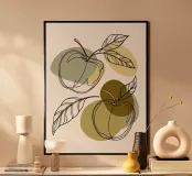 Illustrazione "Due mele": Elegante semplicità! Questo disegno minimalista presenta tre mele con dettagli sottili e naturali.