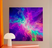 Un colorato vortice astratto di luce ed energia riempie lo sfondo poster