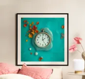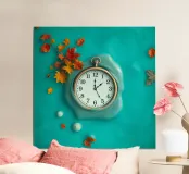 Un orologio che si scioglie in un oceano turchese, un caldo autunno poster con telaio in alluminio