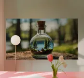 Un paesaggio forestale in miniatura in una bottiglia di vetro poster