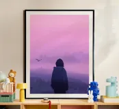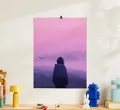 Una ragazza in piedi e guardando gli uccelli della sera Lofi Art poster