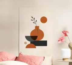"An abstract botanical art wallpaper features stylized representations of plants and foliage using artistic shapes, flowing lines, and modern color palettes. Rather than realistic depictions, the desig"