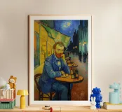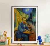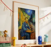 Nel famoso dipinto di Vincent van Gogh "Terrazza del caffè di sera", l'artista siede pensieroso in un vivace caffè notturno, circondato da un cielo stellato scintillante.