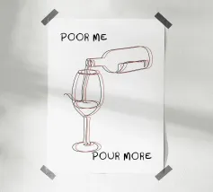 Disegno a linee continue di vino che si versa dalla bottiglia al bicchiere