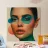 Volto di donna con forme geometriche e trucco verde acqua poster