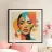 Volto di donna con sovrapposizione di forme geometriche in pastello poster con telaio in plastica