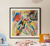 Il Bild mit rotem Fleck (Quadro con macchia rossa) di Wassily Kandinsky (1914) è un'opera fondamentale della prima astrazione. Colori audaci e forme dinamiche convergono intorno a un punto focale rosso, creando un senso di ritmo, movimento e intensità emotiva. Dipinta durante i suoi anni cruciali a Monaco, la composizione riflette la ricerca di Kandinsky di un linguaggio visivo spirituale, dove forma e colore trascendono la rappresentazione. Il punto rosso funge sia da ancora che da scintilla, simboleggiando l'energia e la necessità interiore al centro dell'astrazione.