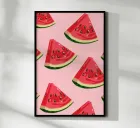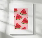 Add a splash of summer to your space with this vibrant watermelon illustration poster. Featuring juicy red watermelon slices on a soft pink background, this fun and modern fruit print is perfect for kitchens, kids' rooms, or playful gallery walls.