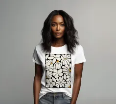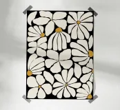 Astrazione, capricciosa e gioiosa fioritura di margherite color crema con centro giallo al calar del sole.