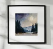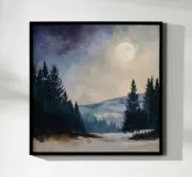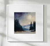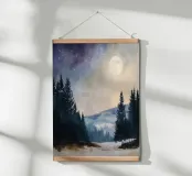 Winter Forest Landscape - Snowy Trees and Full Moon Wall Art poster