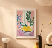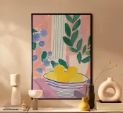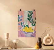 Stampa di limoni, arte botanica astratta, arte murale pastello poster con telaio in alluminio