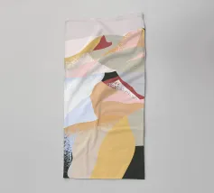 Le macchie strutturate in tonalità calde evocano un deserto mutevole in rilievo astratto.