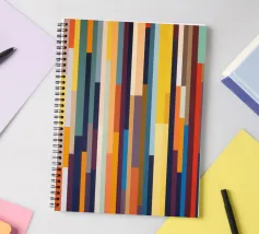 Una moderna stampa astratta di arte digitale con una composizione di linee verticali in una tavolozza di colori rilassanti di blu, verde acqua, marrone e beige tenui. Le linee variano in larghezza e tono, creando un senso di profondità e ritmo, mentre le linee orizzontali sottili e ampie aggiungono un contrasto dinamico. Questo pezzo evoca una sensazione di calma e raffinatezza, rendendolo un'aggiunta perfetta a spazi abitativi contemporanei, uffici o camere da letto.