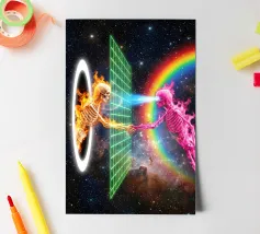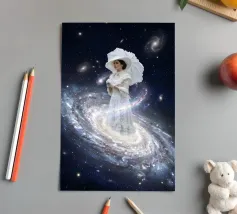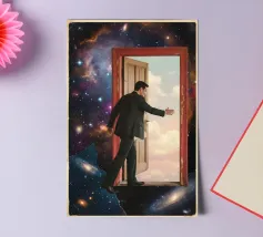 Questa opera d'arte surreale ritrae due figure vestite che camminano mano nella mano attraverso un antico arco di pietra verso un cielo luminoso dalle tonalità rosa e viola. Sopra di loro fluttua un radioso occhio geometrico, che simboleggia la consapevolezza, il mistero e la comprensione più profonda. La miscela di architettura storica, colori tenui del tramonto e iconografia simbolica crea una scena ricca di significato e immaginazione. Ideale per gli amanti dell'arte spirituale, della narrazione surreale e delle decorazioni murali che stimolano la curiosità e la riflessione.