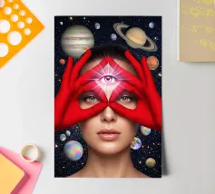 Questa opera d'arte surreale ritrae due figure vestite che camminano mano nella mano attraverso un antico arco di pietra verso un cielo luminoso dalle tonalità rosa e viola. Sopra di loro fluttua un radioso occhio geometrico, che simboleggia la consapevolezza, il mistero e la comprensione più profonda. La miscela di architettura storica, colori tenui del tramonto e iconografia simbolica crea una scena ricca di significato e immaginazione. Ideale per gli amanti dell'arte spirituale, della narrazione surreale e delle decorazioni murali che stimolano la curiosità e la riflessione.