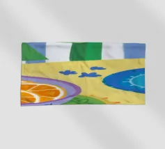 Un patchwork astratto di forme dipinte e strutturate in una tavolozza tenue di blu, ocra e beige crea una composizione sofisticata e ben bilanciata con un tocco artistico e artigianale.