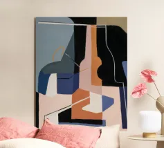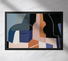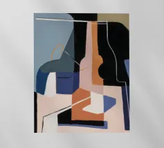Un'astrazione geometrica composta da forme sovrapposte in toni freddi e caldi. La composizione gioca con lo spazio e il vuoto, invitando lo spettatore a interpretarne la tensione architettonica e lo spazio negativo dinamico.