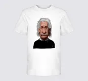 Illustrazione caricaturale umoristica del noto matematico e geniale scienziato austriaco Albert Einstein. Una delle caricature realizzate per la serie Celebrity Sunday, in cui un personaggio famoso viene ritratto in un giorno. L'idea è di mostrarli come in una fototessera per avere coerenza.