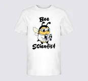 Una simpatica ape in camice e occhiali tiene in mano due provette piene di pozioni colorate. L'illustrazione gioca sul gioco di parole "Bee Scientist", unendo scienza e simpatia in un'unica immagine. Perfetto per chi ama la biologia, la chimica o semplicemente le api con un look da scienziato!
