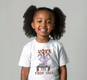 A purple demon goat in a tie sits at a desk with a laptop and coffee, under the phrase “Work From Hell.” The artwork makes a clever pun on daily work feeling like hell, with the demon literally working from hell. Ideal for fans of dark humor, sarcastic office jokes, and anyone who wants to laugh at work struggles.