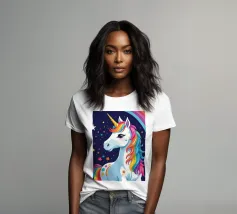 Questo adorabile unicorno, che risplende nei colori neon dell'arcobaleno, stringe un cuore stellato e fluttua su una soffice nuvola di stravagante felicità. Con i suoi grandi occhi scintillanti e una criniera che abbaglia in uno spettro di tonalità brillanti, questo disegno sembra una magica fuga in una terra dove i sogni diventano realtà. È perfetto per aggiungere una ventata di energia giocosa a qualsiasi spazio o oggetto che decora. Che siate giovani o giovani di cuore, questo allegro unicorno è qui per ricordarvi di abbracciare la magia che è in voi e di agire sempre con amore.