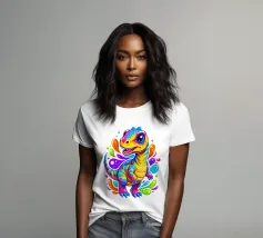 Questo adorabile unicorno, che risplende nei colori neon dell'arcobaleno, stringe un cuore stellato e fluttua su una soffice nuvola di stravagante felicità. Con i suoi grandi occhi scintillanti e una criniera che abbaglia in uno spettro di tonalità brillanti, questo disegno sembra una magica fuga in una terra dove i sogni diventano realtà. È perfetto per aggiungere una ventata di energia giocosa a qualsiasi spazio o oggetto che decora. Che siate giovani o giovani di cuore, questo allegro unicorno è qui per ricordarvi di abbracciare la magia che è in voi e di agire sempre con amore.