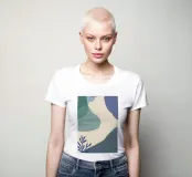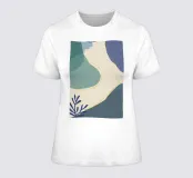 Un'opera d'arte astratta e rilassante che presenta una composizione di forme organiche e fluide in una tavolozza tenue di blu, verde e beige, accentuata da un'unica linea dorata. L'opera è serena, minimalista e sofisticata.