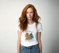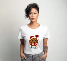 Un allegro biscotto con un cappello da Babbo Natale è circondato da decorazioni festive, libri e cioccolata calda. La scritta "Insegno ai biscotti più intelligenti #tistheseason" aggiunge un messaggio giocoso e a tema natalizio.