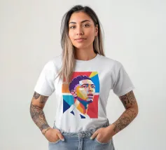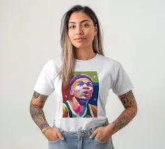 Il WPAP (Wedha's Pop Art Portrait) di Anthony Davis è una rappresentazione sorprendente che cattura l'essenza della star dell'NBA attraverso una lente vibrante e geometrica. Questo stile artistico utilizza forme audaci e intersecanti e una tavolozza di colori vivaci per raffigurare i tratti distintivi di Davis, come la fronte prominente e lo sguardo intenso, che simboleggiano la sua presenza dinamica sul campo da basket.