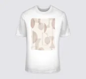 Il disegno presenta un'accattivante disposizione di cerchi, rettangoli e forme astratte di foglie sovrapposte, che alludono sottilmente a forme organiche all'interno della struttura. La texture granulosa aggiunge profondità e interesse visivo.