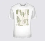 Il disegno presenta un'accattivante disposizione di cerchi, rettangoli e forme astratte di foglie sovrapposte, che alludono sottilmente a forme organiche all'interno della struttura. La texture granulosa aggiunge profondità e interesse visivo.