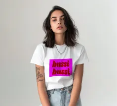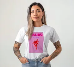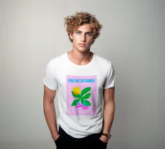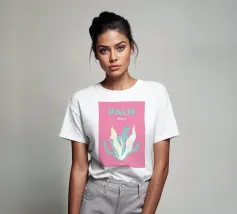 Un poster moderno di ispirazione pop art con il basilico come motivo grafico principale. Le foglie stilizzate di colore verde intenso spiccano sullo sfondo rosa acceso, completate dalla scritta "BASIL" in blu scuro.