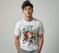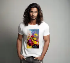 Stravagante arte del collage con un bouquet di rose, peonie e stelle glitterate dorate. Un tocco gioioso e surreale di design a tema floreale e alimentare.